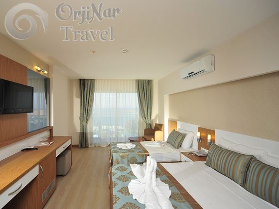 Odalarda; Duş- Wc, TV, balkon, fön, telefon, laminant parke, klima (split), kasa, minibar