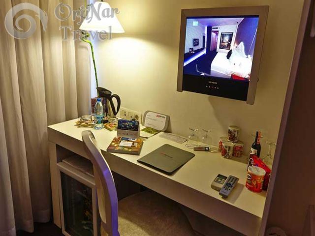 Tüm odalarımızda direk hatlı telefon , duman dedektörü , minibar , klima , kablolu/kablosuz internet hattı , laptop konulabilir safe box , çay/kahve seti-kettle , çalışma masası , pantolon pres ütü , Lcd Tv , ışık geçirmez perde bulunmaktadır.Banyolarımızda , su jetli küvet , telefon , ışıklı makyaj aynası , bornoz , 110-220 volt adaptörü traş prizli saç kurutma makinesi mevcuttur.