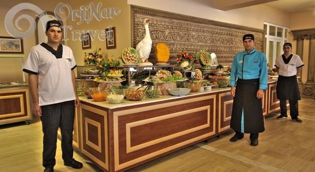 Sabah, öğle ve akşam yemekleri açık büfe olarak servis edilmektedir.Herşey dahil konsepti 24:00 kadar devam etmektedir.Tüm yabancı içecekler , Türk kahvesi ve taze sıkma meyve suları ücretlidir.