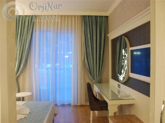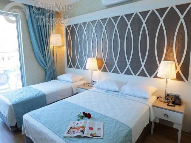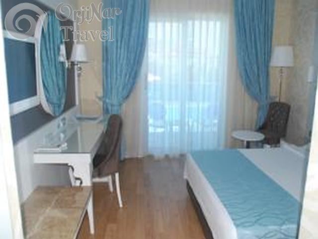 Ocean Blue High Class Hotel 10 Adet Swim-up(Balkonunuzdan doğrudan havuza girilebilen ),3 Adet lüks balkonunda jakuzili Suit Oda,13 Adet Standart Havuz Manzaralı Oda,19 Adet Dış Manzaralı Oda ve 16 Adet Çatı Katı Oda olmak üzere toplam 61 lüks olarak dizayn edilmiş odadan oluşmaktadır.2 blok bulunan otelin her odasında Balkon,Split Klima,Uluslararası Telefon(Oda ve Banyo,Ücretli),32’’ LCD TV,Saç Kurutma Mak.,Elektronik Kasa(Ücretli),Wi-Fi,Minibar(Ücretli),Sehpa ve Sandalye ile Uluslararası TV Kanalları standart olarak bulunmaktadır.